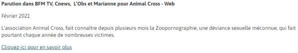 - https://www.relations-publiques.pro/185296 - Les députés osent s'attaquer à la zoophilie dans le cadre de la PPL Animaux